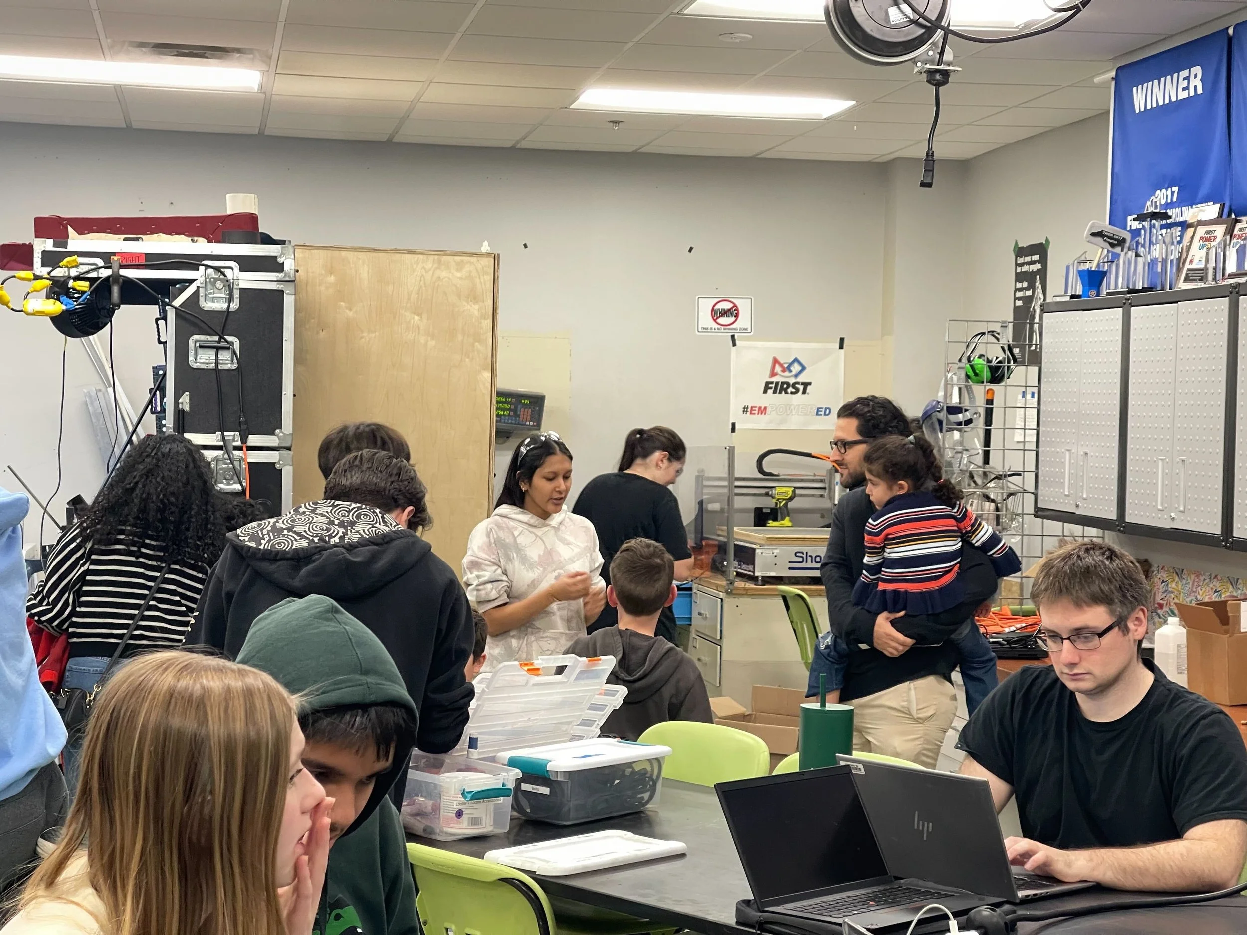 This was a more formal event where members of our team did an assembly with about 50 8th grade technology students. The students were even able to drive our robot around and complete an obstacle course!